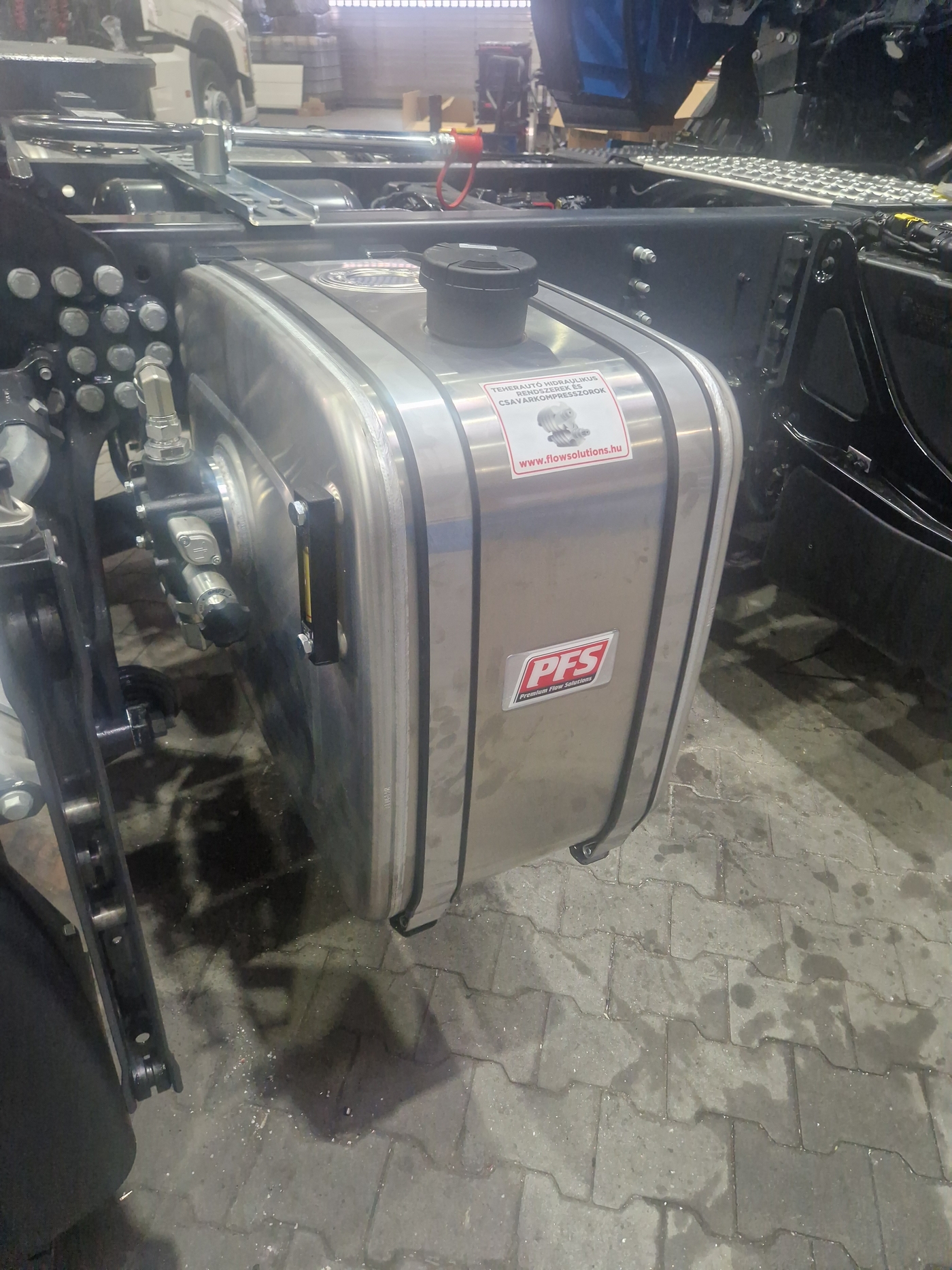 Vezi un exemplu de instalare a rezervorului de ulei de 300 l pentru basculare pe un camion MAN