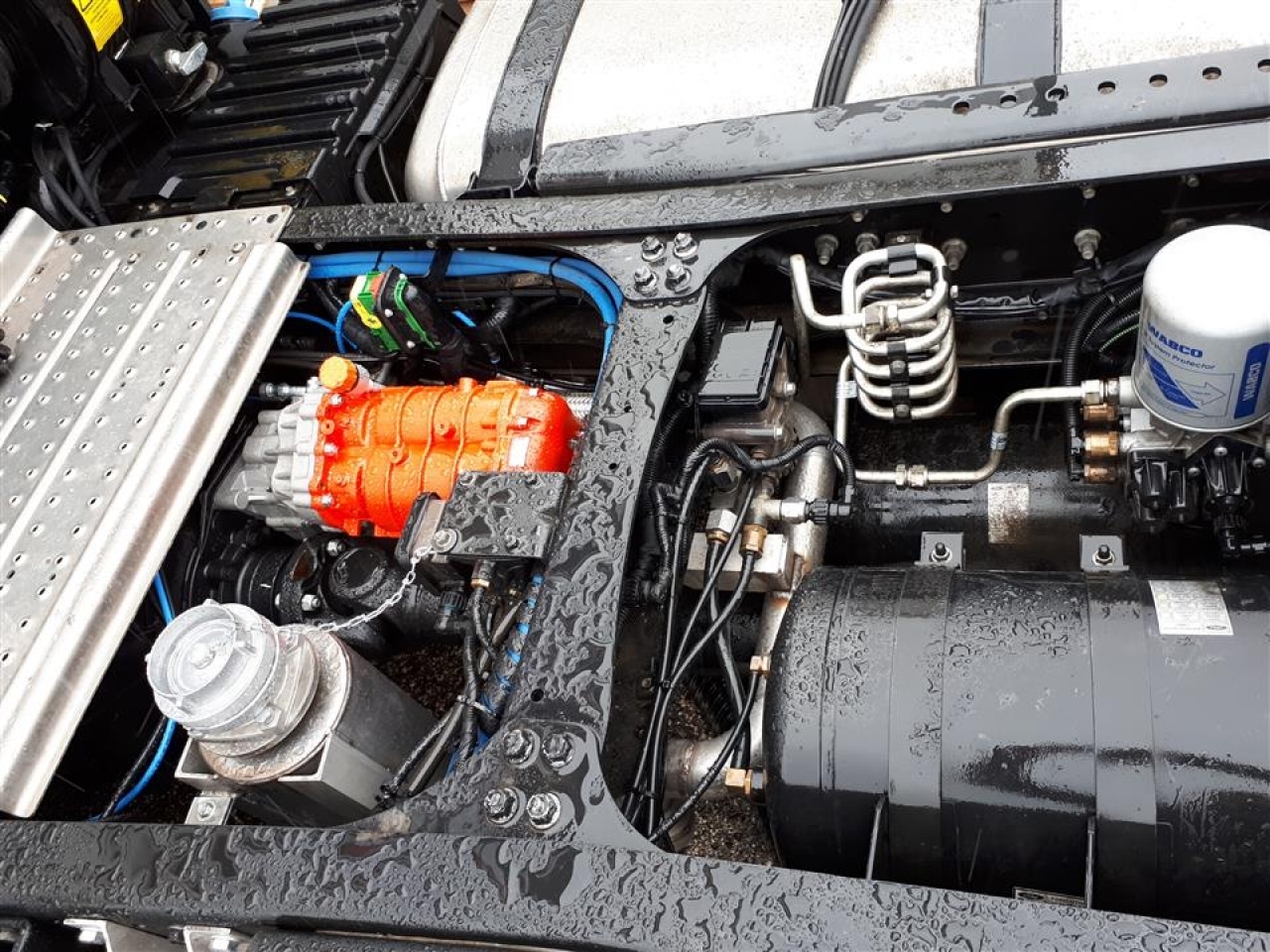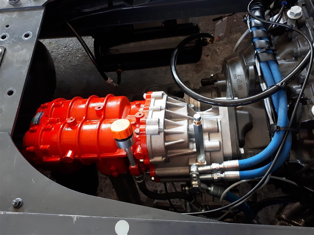 The MH6 is a compressor mounted directly on the gearbox. Its maximum capacity is 600 m³/h, making it optimal for unloading cement and other powdered construction materials. The MH6 is installed directly on the gearbox with an original PTO, using gearbox oil for lubrication – no cardan shaft or compressor oil is required. It can be installed with or without air cooling, depending on the application.