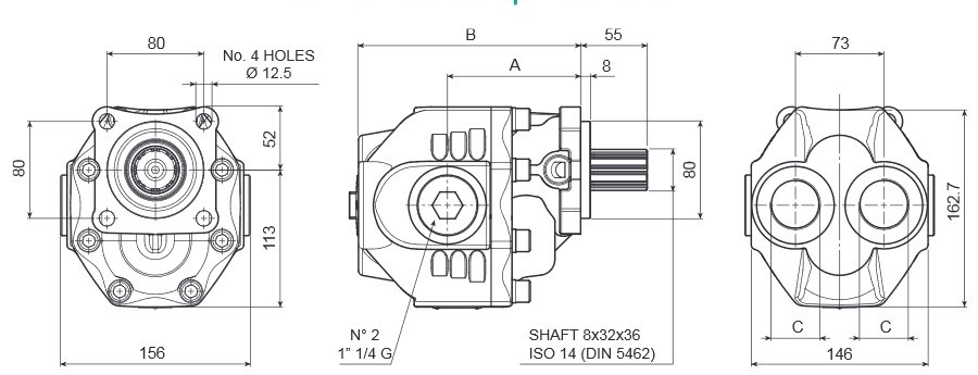 The Interpump Hydraulics gear pump BLH 090 is a high-quality solution for hydraulic systems in commercial vehicles. This bi-rotational cast-iron pump delivers long-lasting reliability and efficiency in operation. Available in versions from 90 cm³ to 120 cm³, with inlet and outlet ports on the rear or side, a flange with four fixing holes, and a DIN 5462 SE shaft.