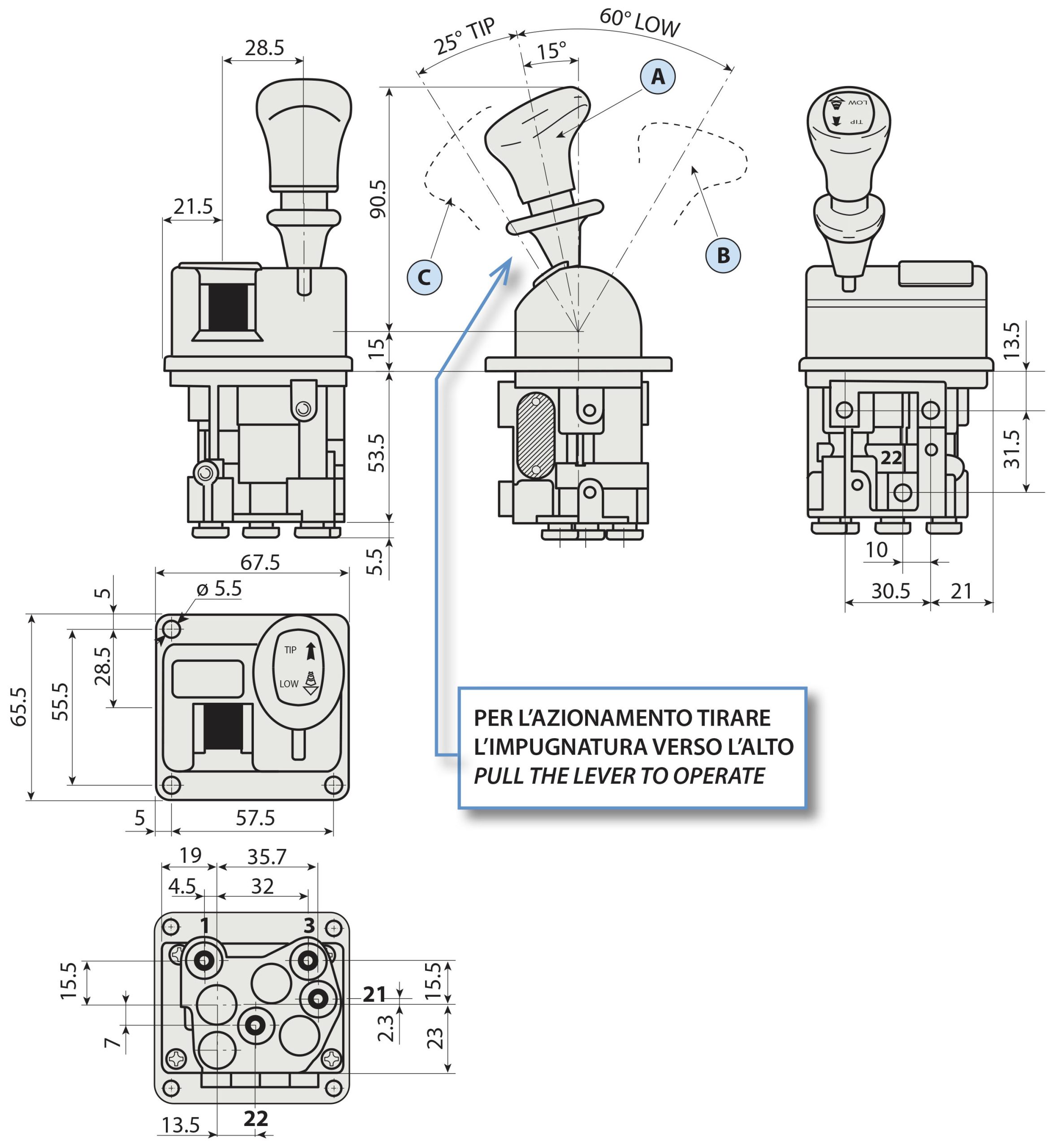 Technical Specifications – IPH Tipping Control Lever